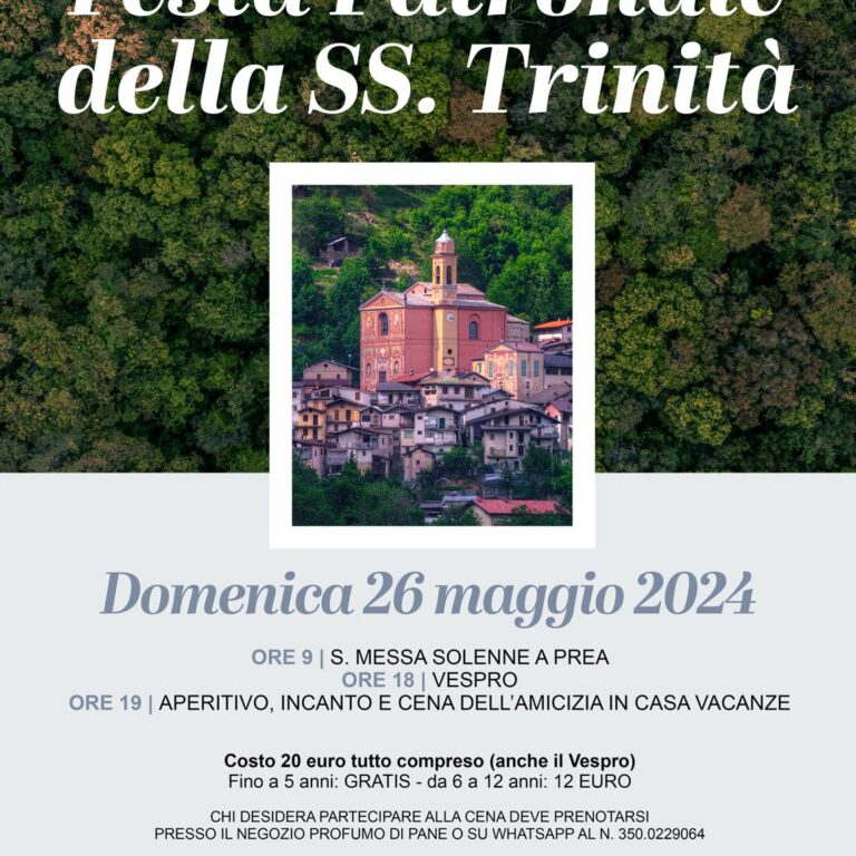 H.9 messa H. 18 vespro H.19 Aperitivo incanto e cena…