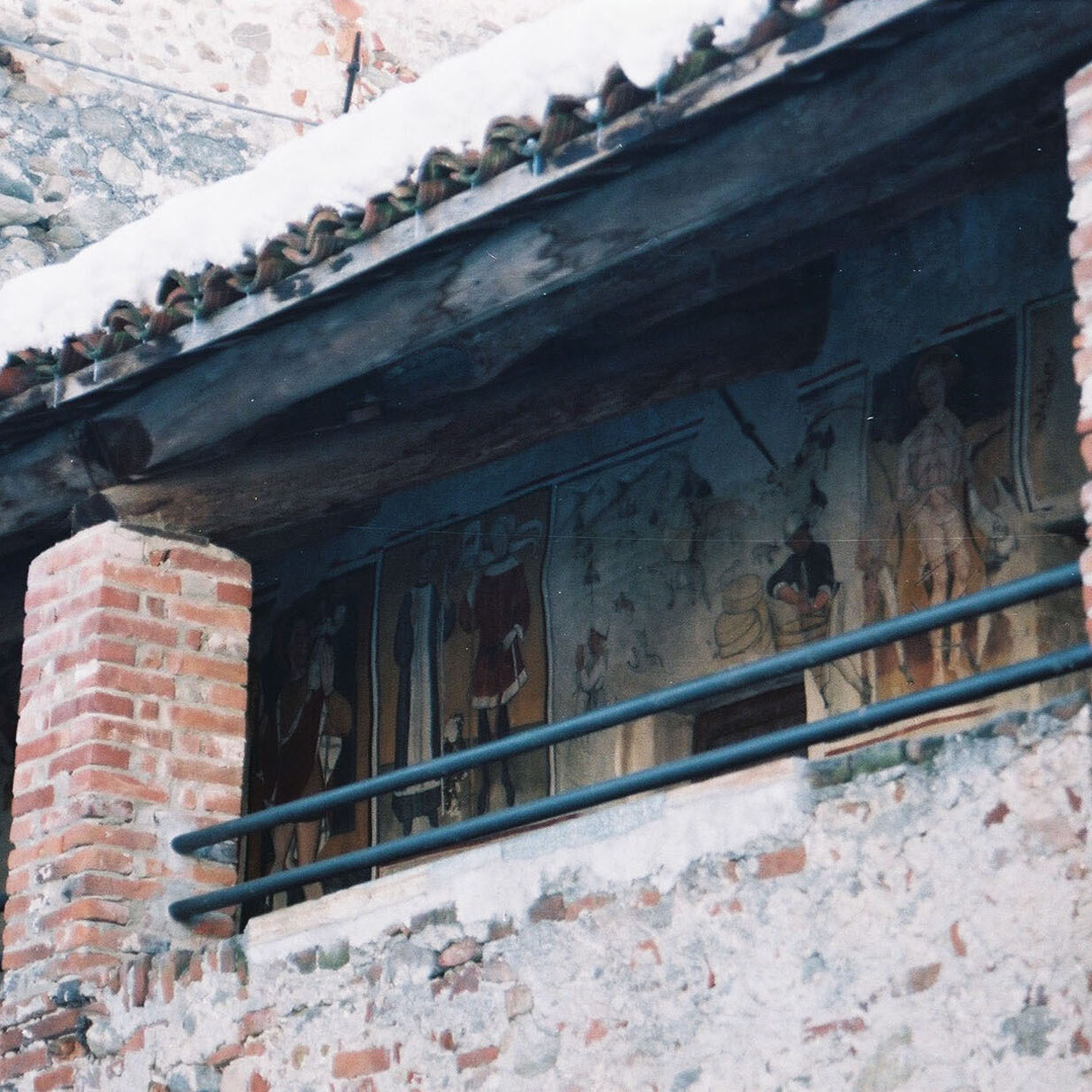 Nella penombra della balconata che domina il cortile si può ammirare una testimonianza artistica di elevato valore: gli affreschi del Mazzucco. Questi, l’autore, probabilmente trovandosi ospite o perlomeno alloggiato dai frati nel periodo che ha lavorato all’interno della nostra Pieve di S.Maurizio, dove una sua opera è datata 1486, ha lasciato questo importante ricordo sulla facciata esterna del cascinale. Il ciclo pittorico, che recentemente a vissuto un importante fase di restauro, viene dettagliatamente descritto a parte in un un’apposita cartella. La piccola borgata è posizionata a circa 630 m. di altitudine ed attualmente vissuta da circa 25 persone.