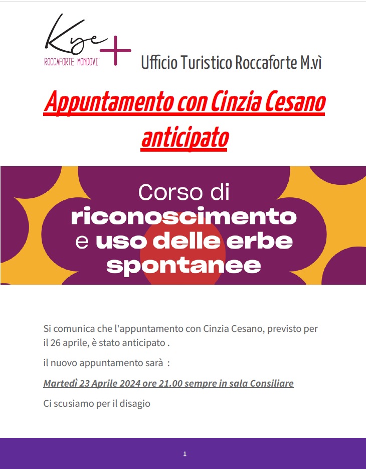 Appuntamento anticipato a martedì 23 aprile ore 21.00