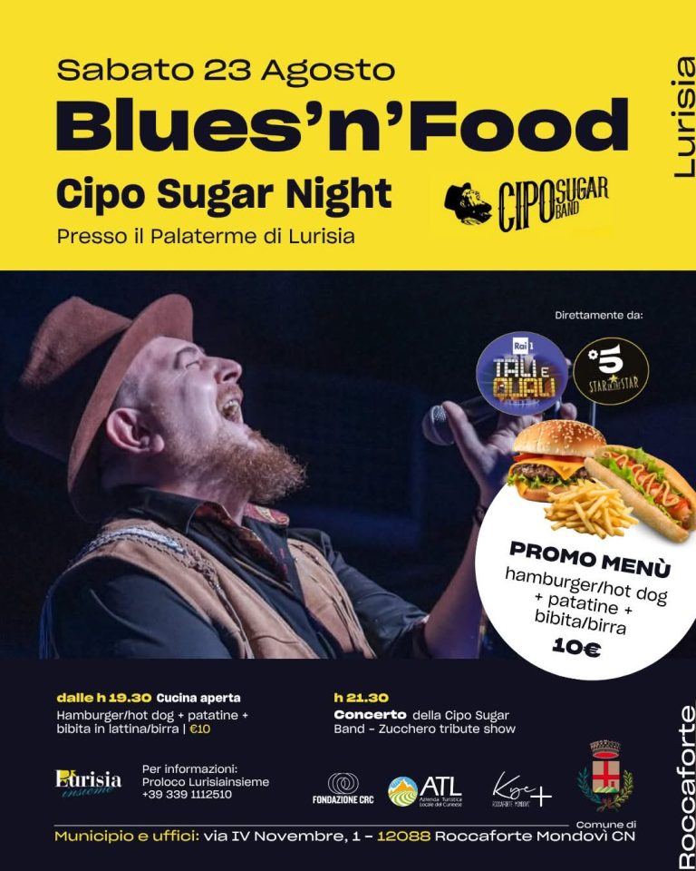 Blues’n’Food – Cipo Sugar Night 🍺🎤 Sabato 23 agosto…